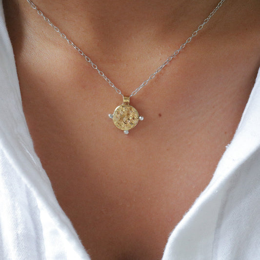 At her workbench, she meticulously transforms raw brass and precious metals into celestial forms. Through fire, focus, and fine craftsmanship, she captures the quiet magic of the cosmos, creating jewelry that feels both timeless and otherworldly.